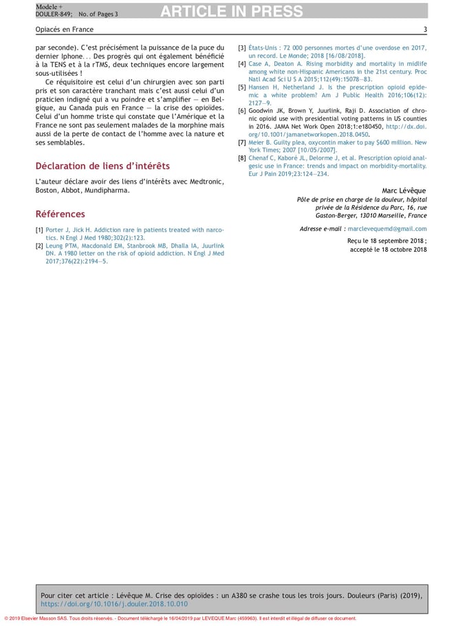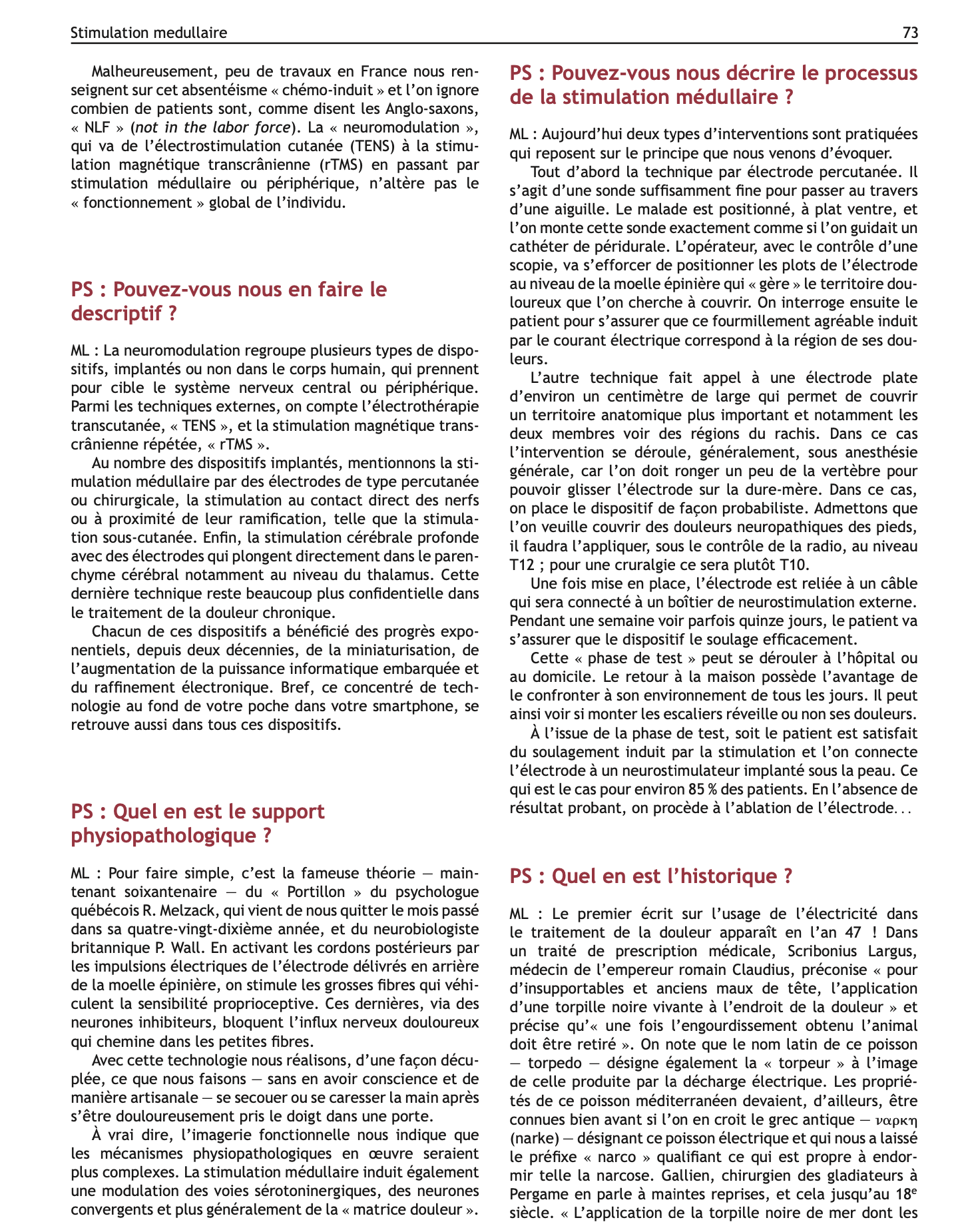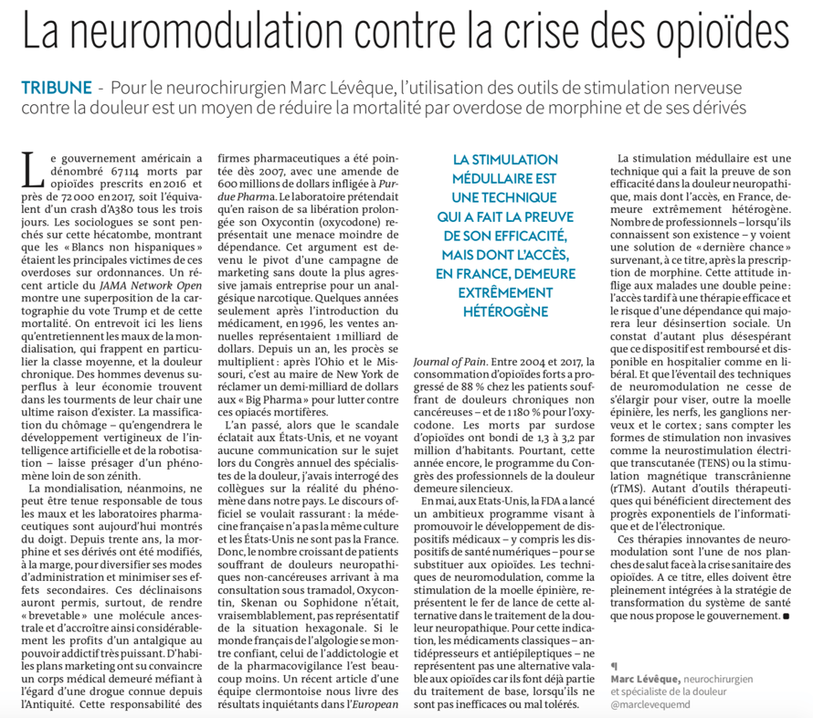 Remarquable reportage réalisé par la journaliste Sylvie Riou-Milliot, à Marseille, qui permet une excellente compréhension de la stimulation médullaire (mécanisme d'action, parcours du patient, déroulement de l'intervention, témoignages de patients, suivi, complications potentielles...). Le PDF