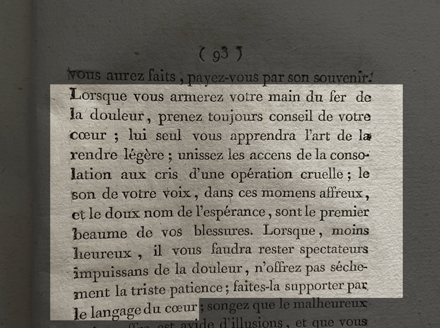 "Vous qui êtes au chevet du malade douloureux n'offrez pas sèchement la triste patience ; faites-la supporter par le langage du coeur "