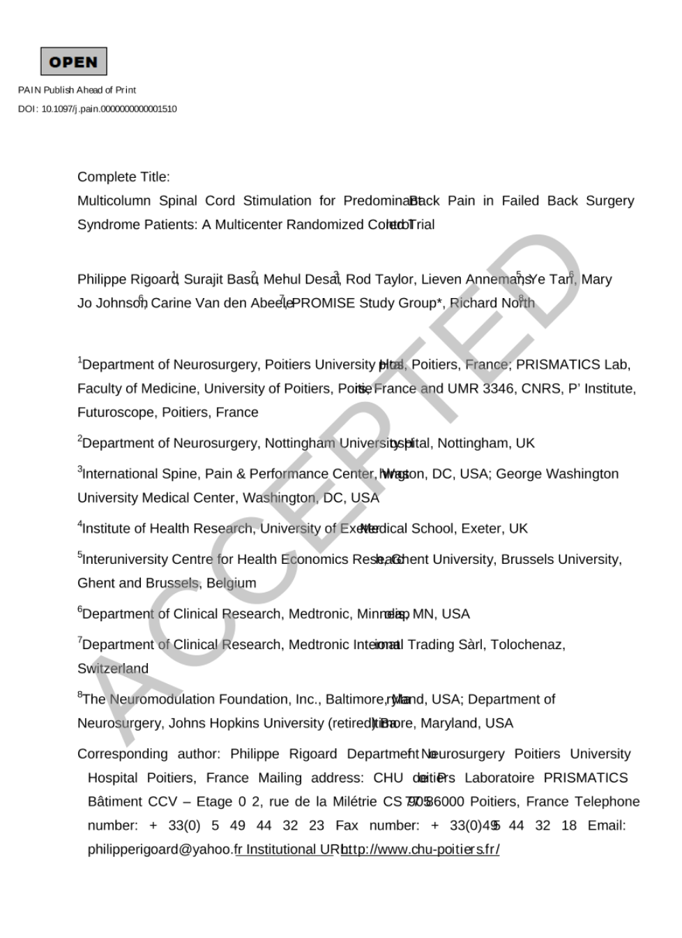 Une grande étude internationale menée par Philippe Rigoard de Poitiers montre, pour la première fois, l'intérêt de la stimulation médullaire (avec une électrode multicolonne) dans le traitement de FBSS où la #lombalgie chronique prédomine 👏🏻👏🏻👏🏻